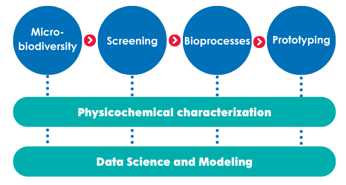 Microfluidic equipment and 24 bioreactors up to 2 liters, conventional microbiology equipment, an area dedicated to molecular biology and flow cytometry, with the capability to perform manipulations in an anaerobic environment.