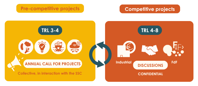 Ferments du Futur finances an annual call for research projects aimed at French public laboratories and conducts confidential innovation projects with companies.